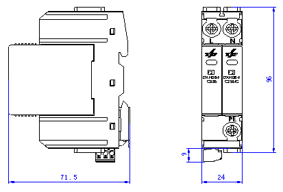 圖4-1 DXH06-FC385/1+1型電涌保護(hù)器外形尺寸(單位:mm)