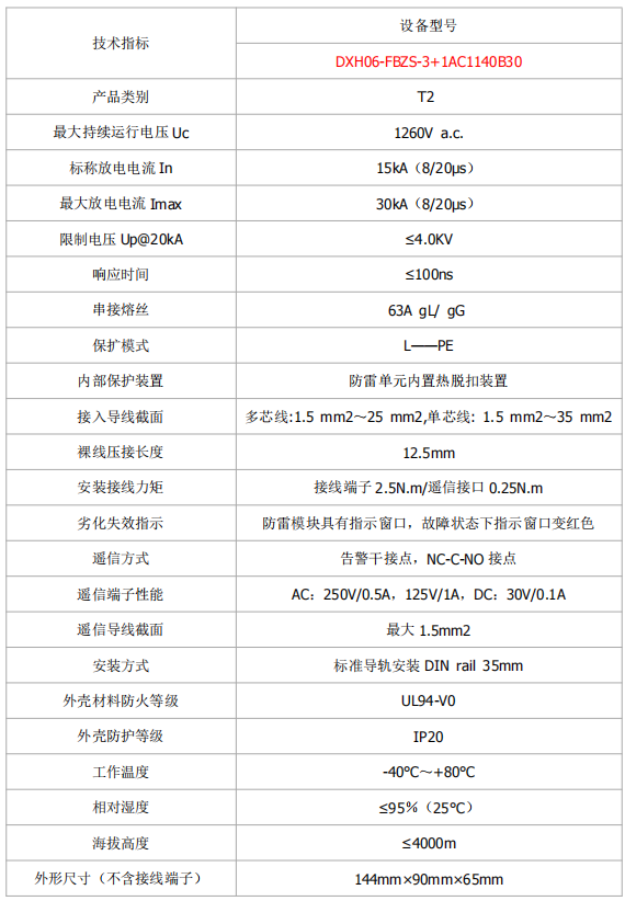DXH06-FBZS-3+1AC1140B30是帶有遙信報(bào)警裝置的電涌保護(hù)器。產(chǎn)品適用于風(fēng)電行業(yè)4~12MW以上風(fēng)機(jī)變流系統(tǒng),變流器電壓為1140V的電源設(shè)備防雷以及操作過電壓的保護(hù)。