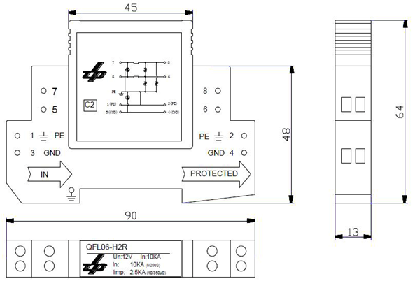 QFL06-H2R SPD模塊,寬度為13mm節(jié)約安裝空間,用于直接或間接屏蔽接地的對(duì)地隔離的平衡接口一對(duì)線保護(hù),適用0A-2及后續(xù)分區(qū)的防雷保護(hù),SPD模塊可插拔。