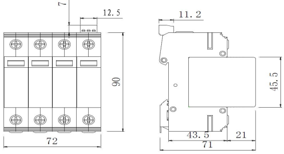 | 內(nèi)部保護(hù)裝置 | 防雷單元內(nèi)置熱脫扣裝置 |