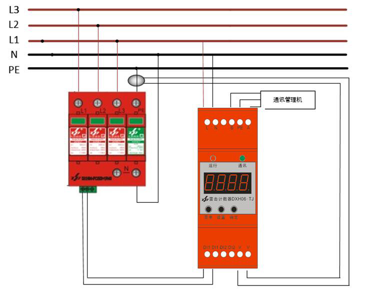 DXH06-TJ雷擊計數(shù)器是我公司新開發(fā)的一款智能型雷擊計數(shù)器,適用于電源防雷箱、帶防雷模塊的電源配電箱內(nèi)等,也可以配合雷電在線監(jiān)測系統(tǒng)使用。能實時監(jiān)測防雷器對雷電泄流次數(shù)、監(jiān)測防雷器的狀態(tài)、箱內(nèi)溫度以及能夠準確記錄雷電流泄流時間。自帶隔離的RS485接口,能將監(jiān)測到的數(shù)據(jù)和狀態(tài)上傳。